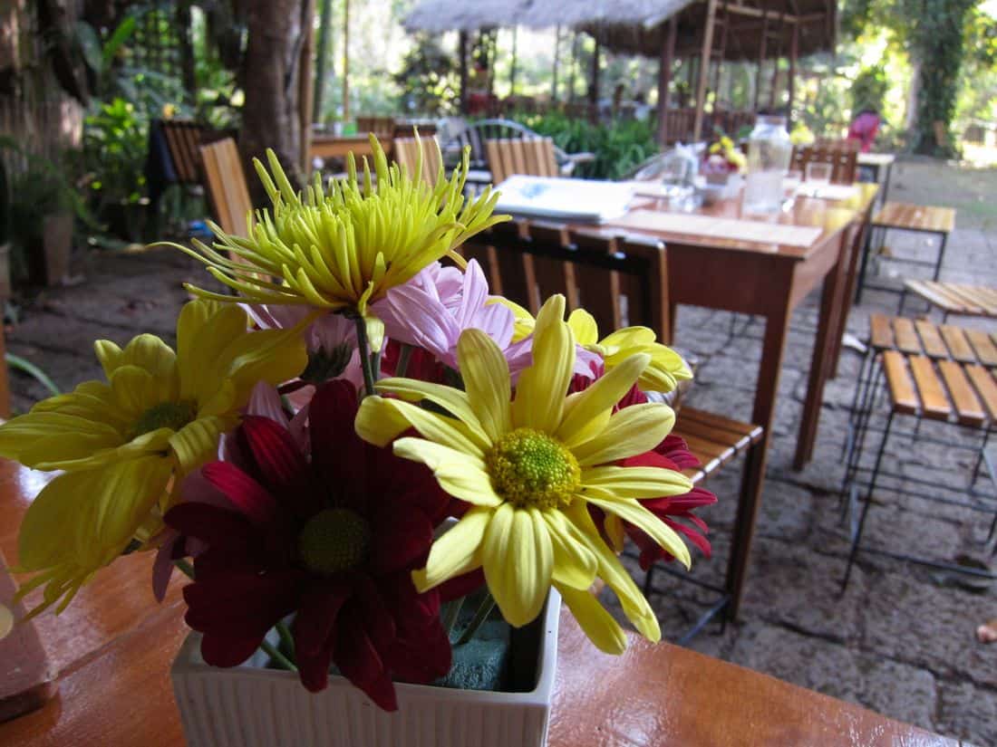 We stayed at Chiang Dao Nest which was the perfect place to unwind. The mini-resort is set in expansive gardens filled with very tall trees, lush plants, and brightly coloured flowers. Our cute bamboo hut was far enough apart from the others for privacy and we quickly decided we’d be spending much of the time on our verandah, enjoying the views and reading.