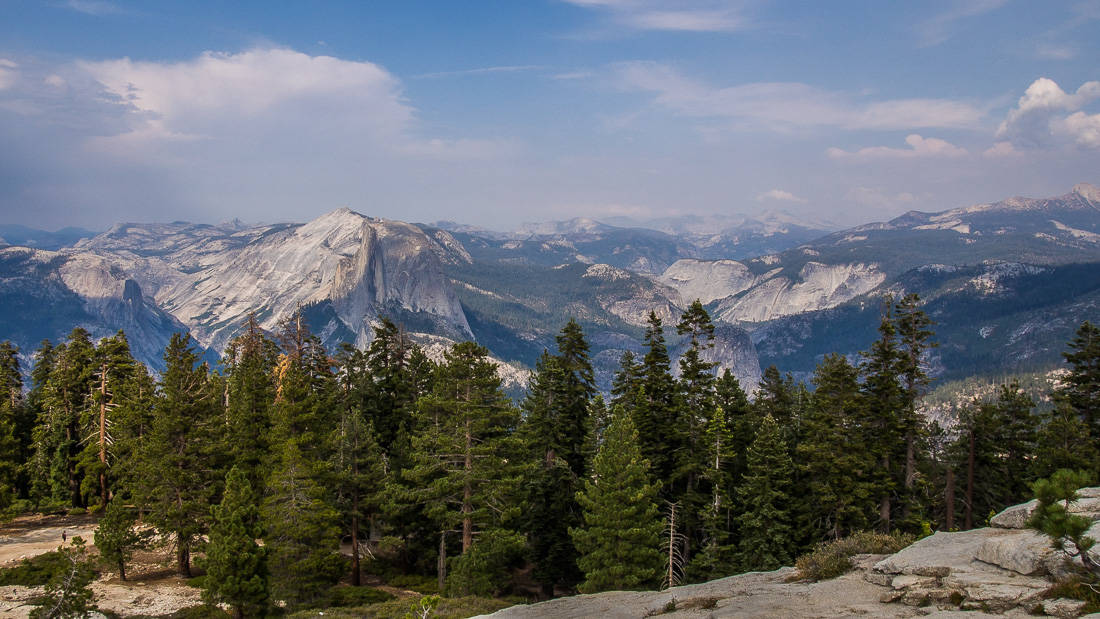 You can see the peaks of the high country, Half Dome, Nevada Falls, and right down to the verdant carpet of meadows and forest in the valley far below.