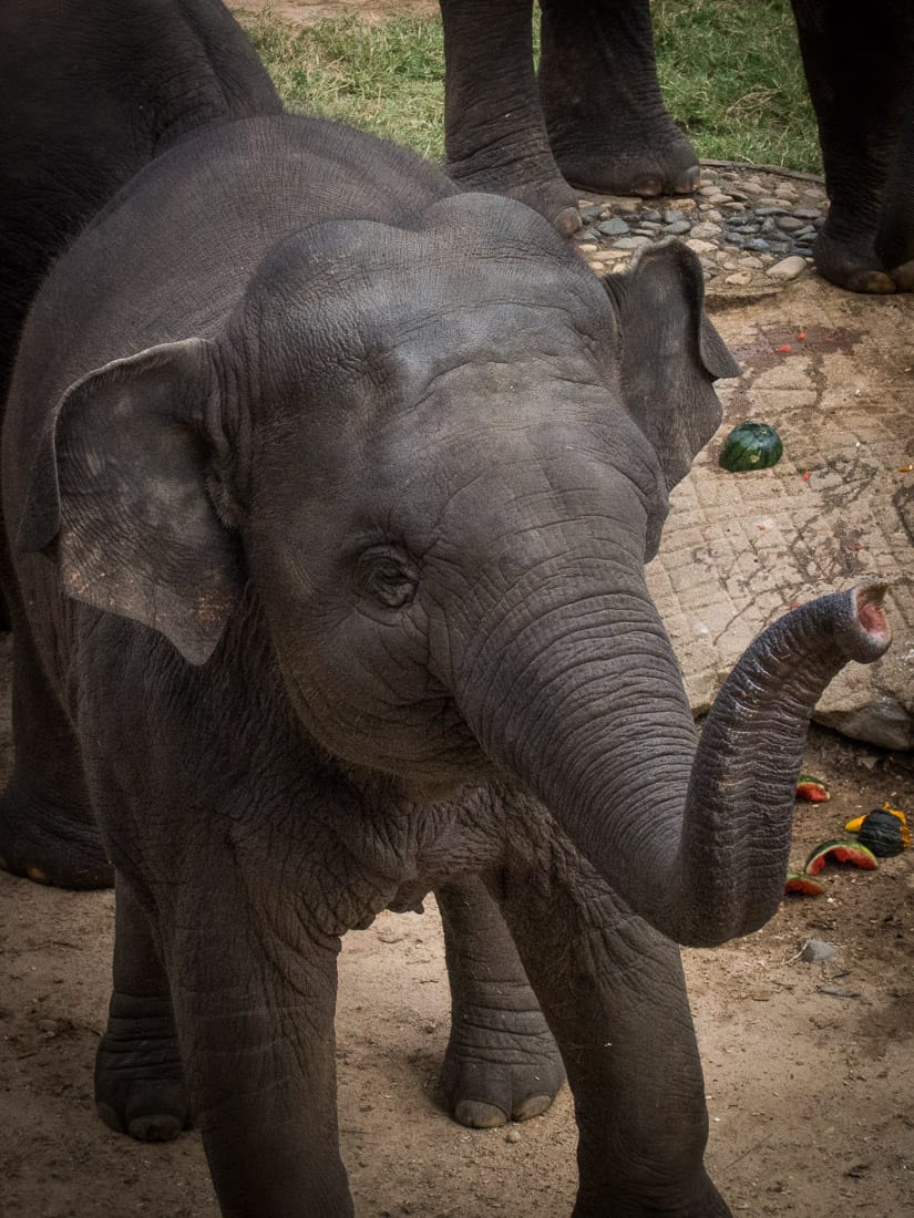 Elephant Nature Park is about 60km from Chiang Mai. A one day visit costs 2500 baht ($76) and includes transport from/to your hotel, and a tasty vegetarian lunch buffet. It’s popular so book in advance online or at their office near Tha Phae Gate.