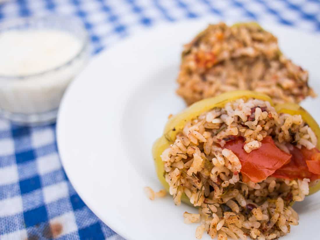 Common varieties are peppers (biber dolma) or aubergines (patlıcan dolma). They can be a meze or a vegetarian main.